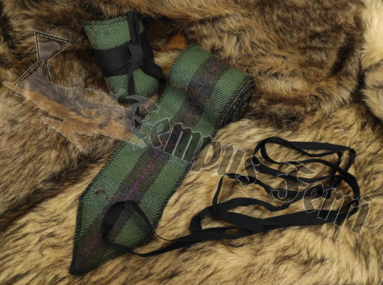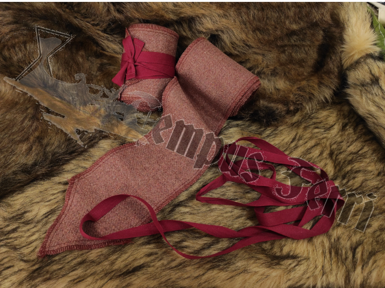 Inspiradas en hallazgos Arqueológicos, están fabricadas de una sola pieza de lana tejida y llevan una cinta de algodón para facilitar su sujección.